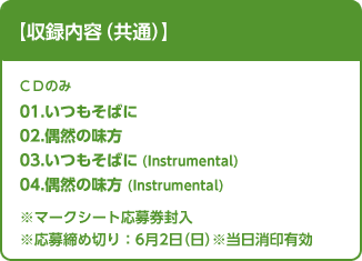 ※一部CDショップ、ECサイトでは特典が付かない場合がございますので、各店舗にご確認ください。